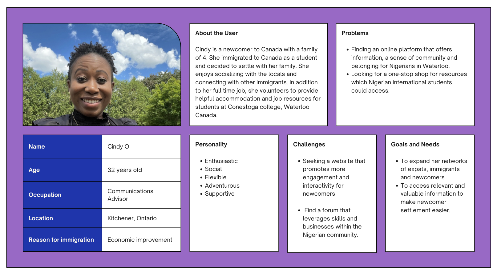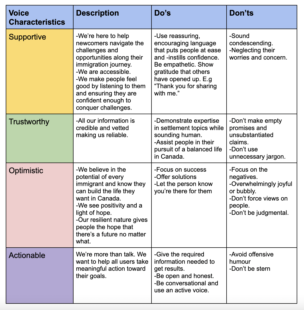 Within two weeks, I interviewed 7 first generation immigrants to learn more about their challenges when they migrated to Canada and solutions they seek. I created interview guides with questions focused on what issues they encountered settling in a new country, how they accessed settlement information, and what factors influenced them when deciding which organizations to source information on.