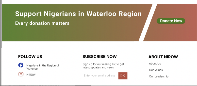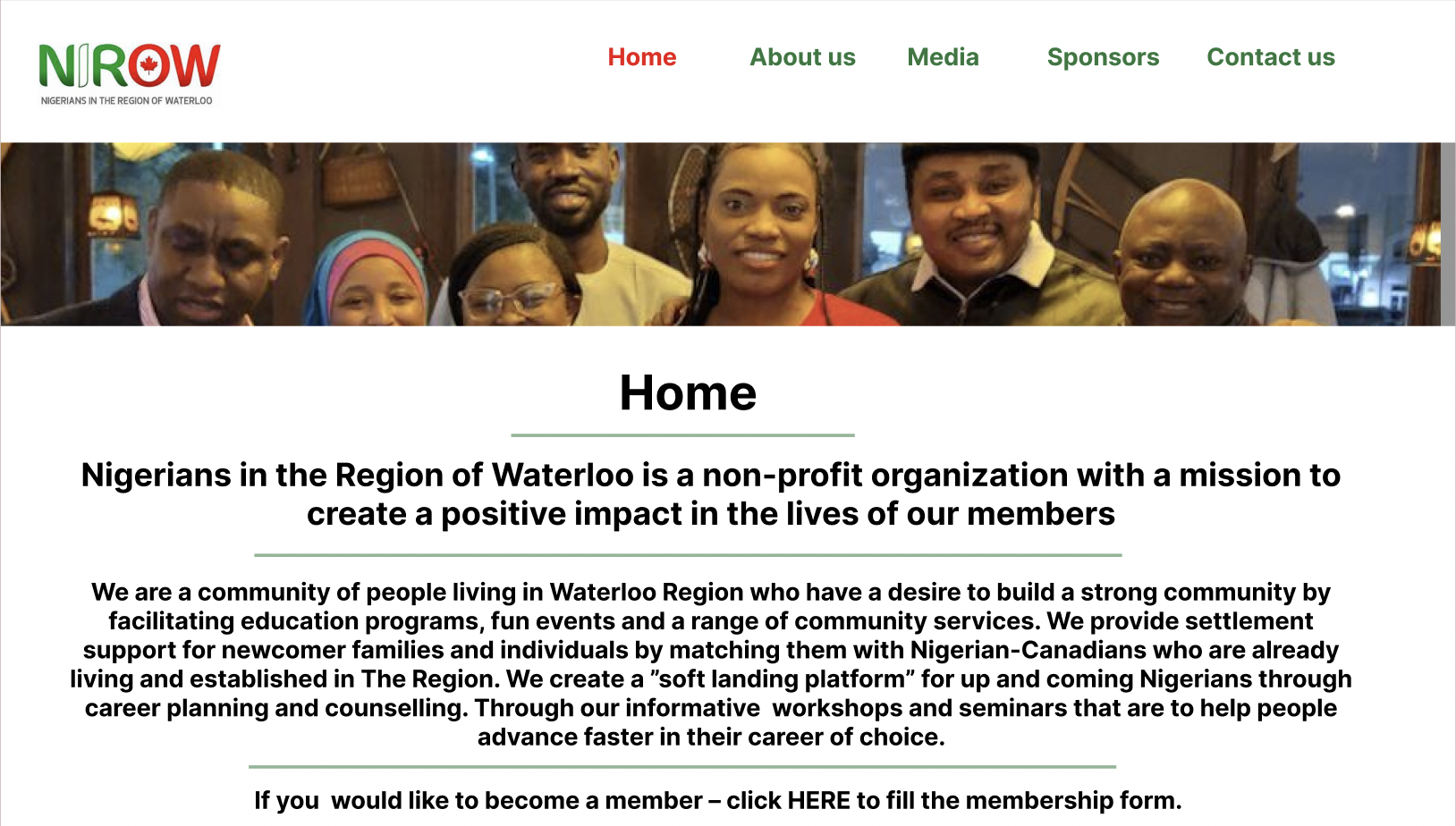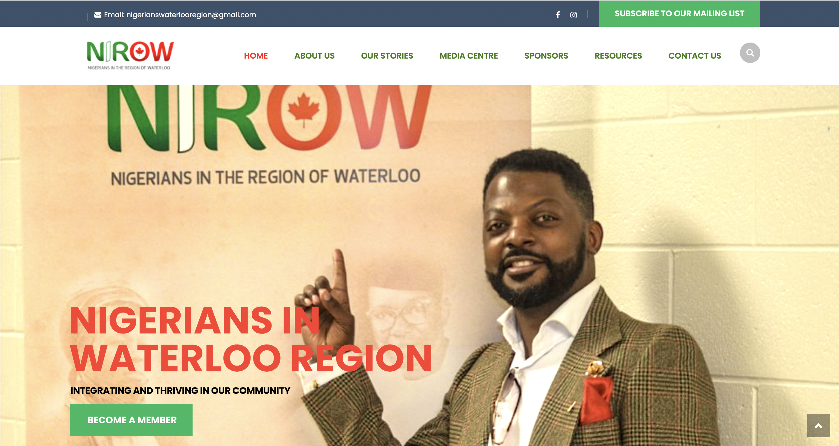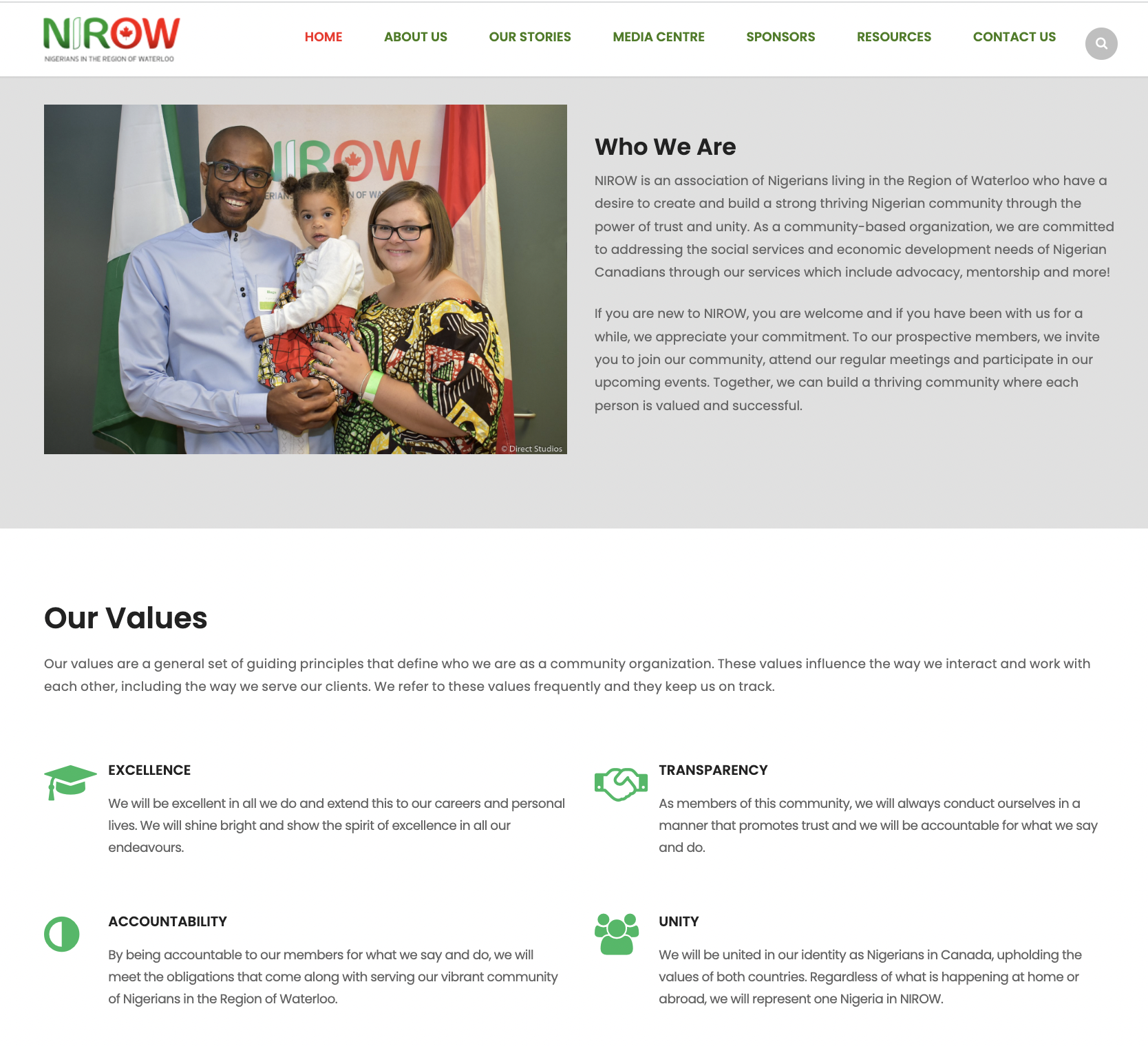 My freelance client, Nigerians in Region of Waterloo (NIROW) is an association that provides members with the appropriate community resources for career mentorship, childcare, accommodation and related needs.