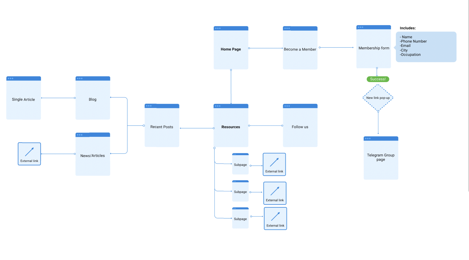I developed the user flow, where I broke down how a user can to join NIROW as a member and explore the resources for newcomers.