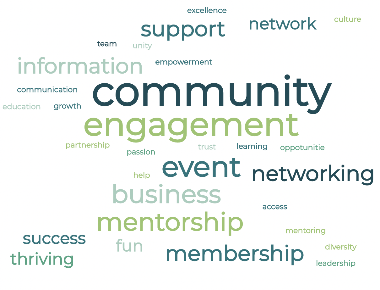 I tracked keywords in comments left by members in NIROW's online forums (WhatsApp and telegram groups). Community, engagement and event were the top three keywords.